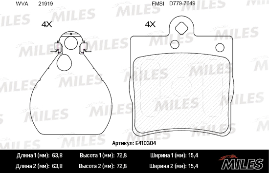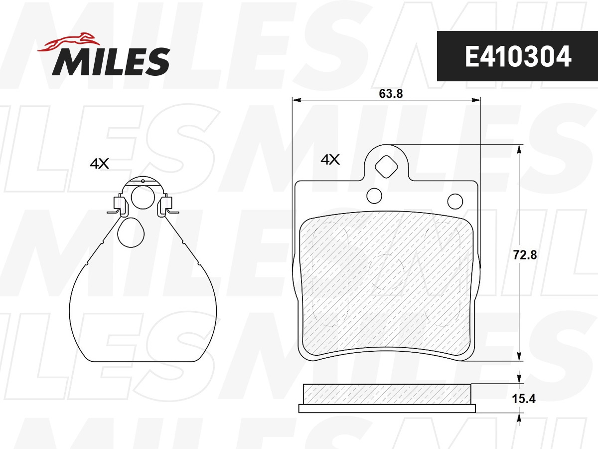 E410304 MILES СНЯТ С ПР-ВА Колодки тормозные задние (без датчика) (Смесь Low-Metallic) MERCEDE