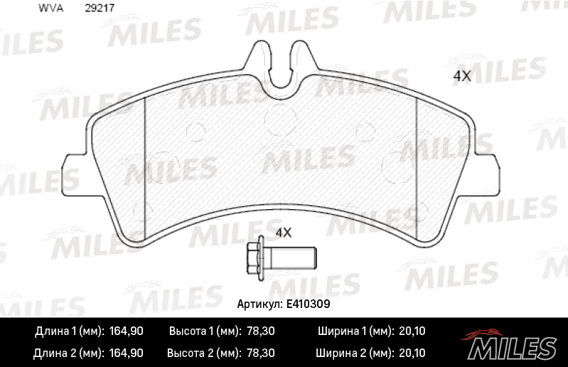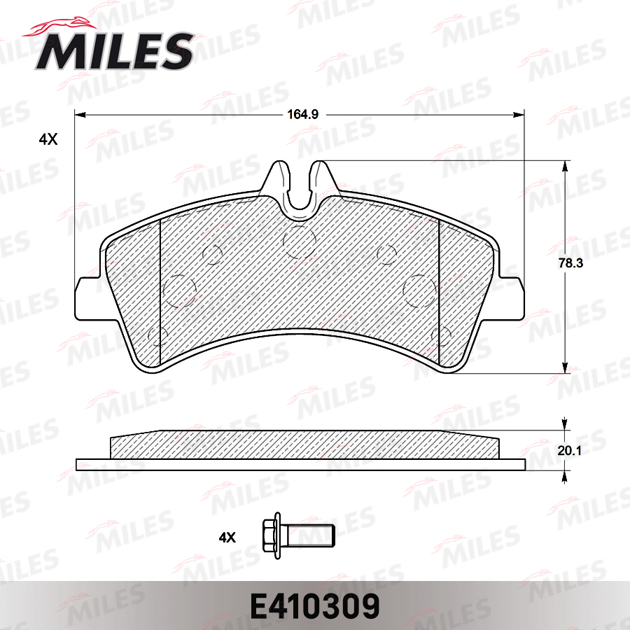 E410309 MILES Колодки тормозные задние (без датчика + болты) (Смесь Low-Metallic) MERCEDES SPR