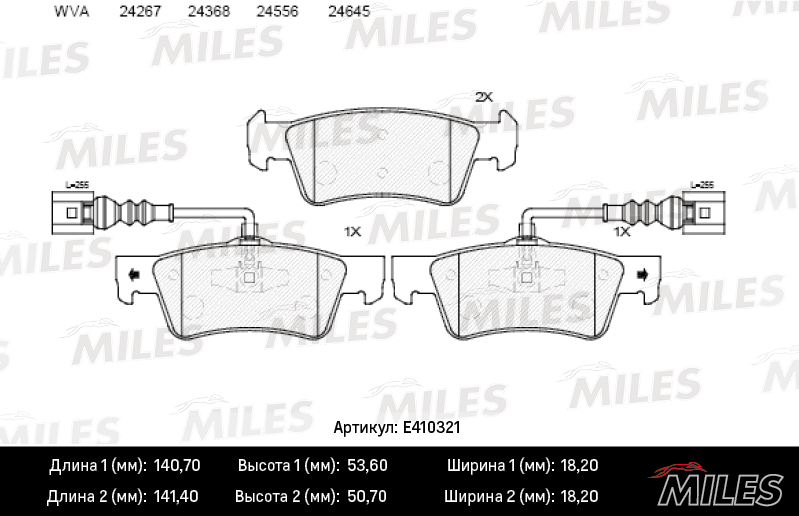E410321 MILES Колодки тормозные задние с датчиком (Смесь Low-Metallic) VOLKSWAGEN TOUAREG 02-1