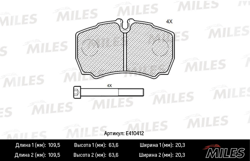 E410412 MILES Колодки тормозные задние (Смесь Low-Metallic) FORD TRANSIT 06-/IVECO DAILY 01- (