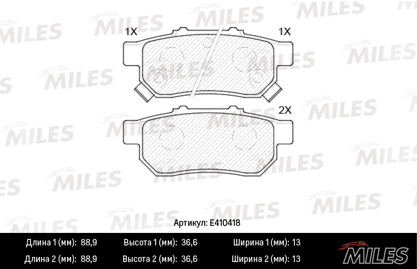 E410418 MILES Колодки тормозные задние (Смесь Low-Metallic) HONDA CIVIC VI 1.6 95-01/JAZZ 1.2/