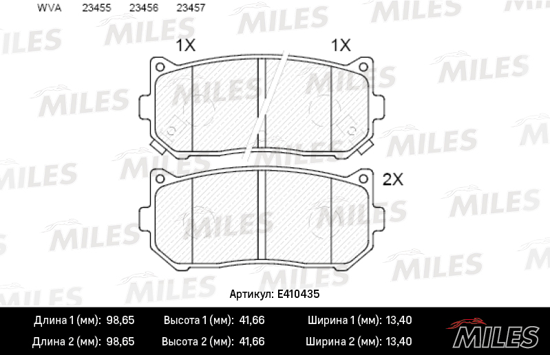 E410435 MILES Колодки тормозные задние (без датчика) (Смесь Low-Metallic) KIA SPECTRA/CARENS 0