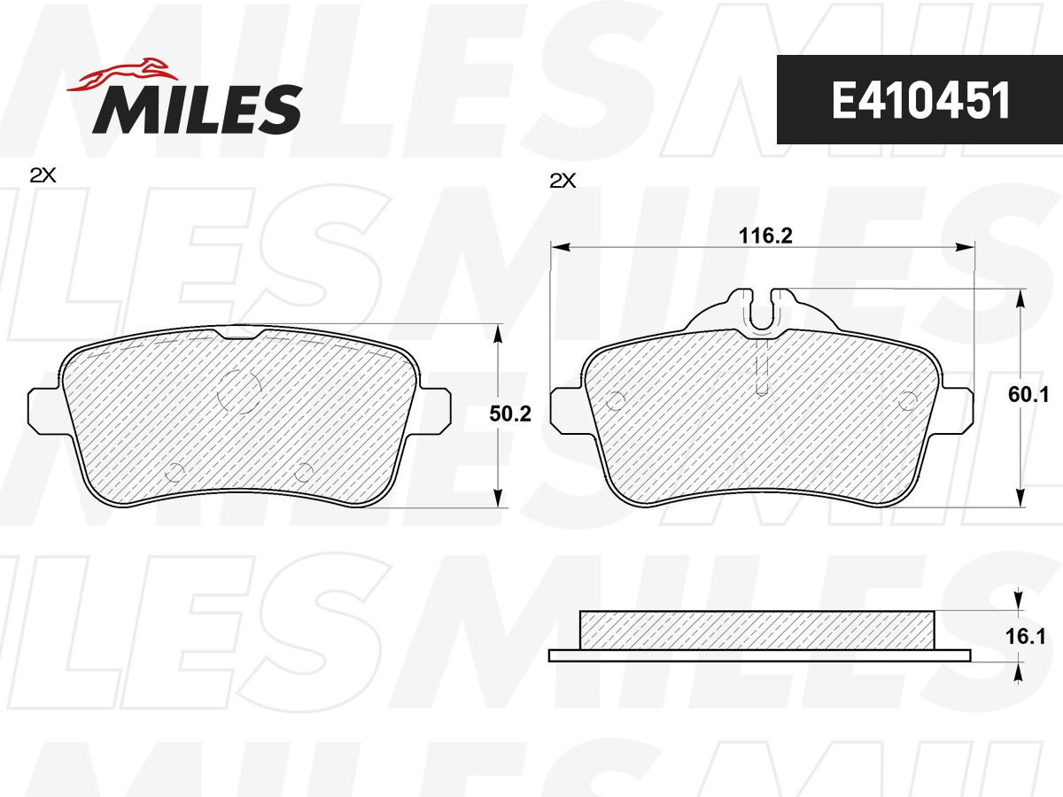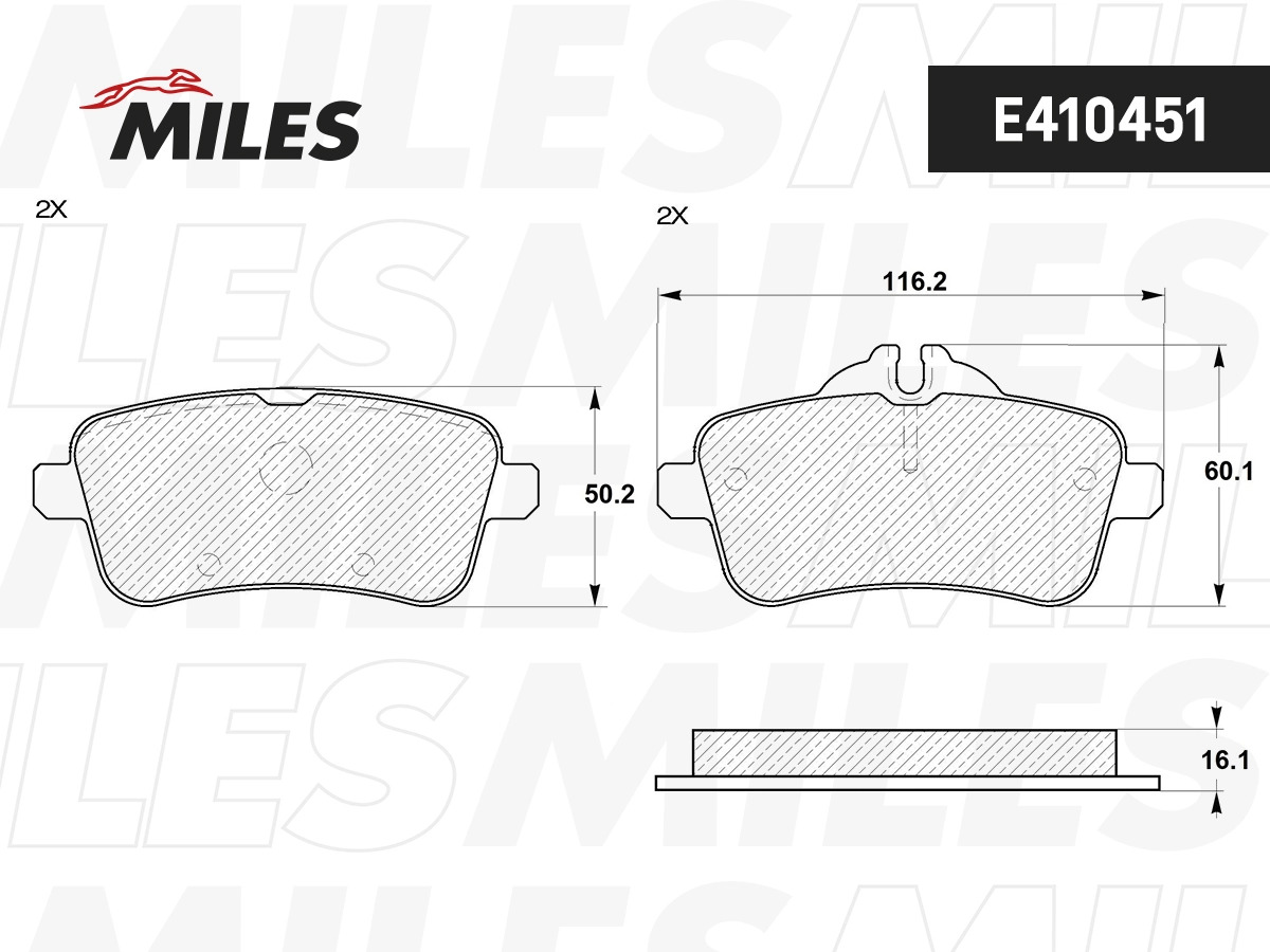 E410451 MILES Колодки тормозные задние (без датчика) (Смесь Low-Metallic) MERCEDES GL X166/ML