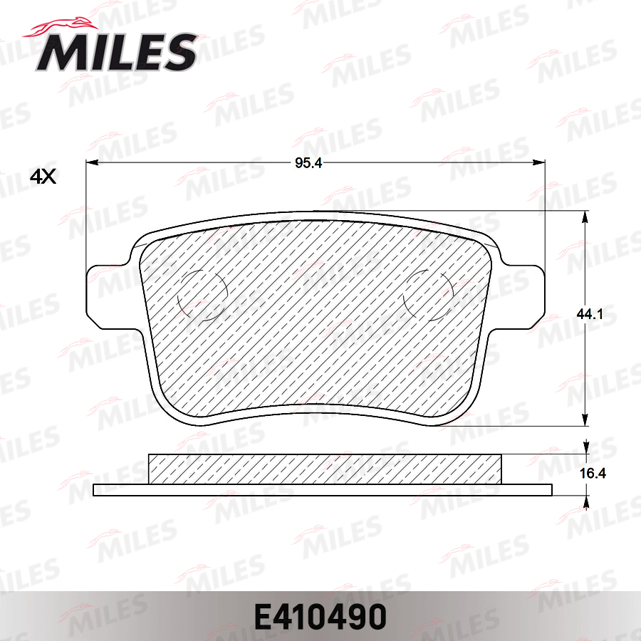 E410490 MILES Колодки тормозные задние (без датчика) (Смесь Low-Metallic) RENAULT KANGOO 08- (