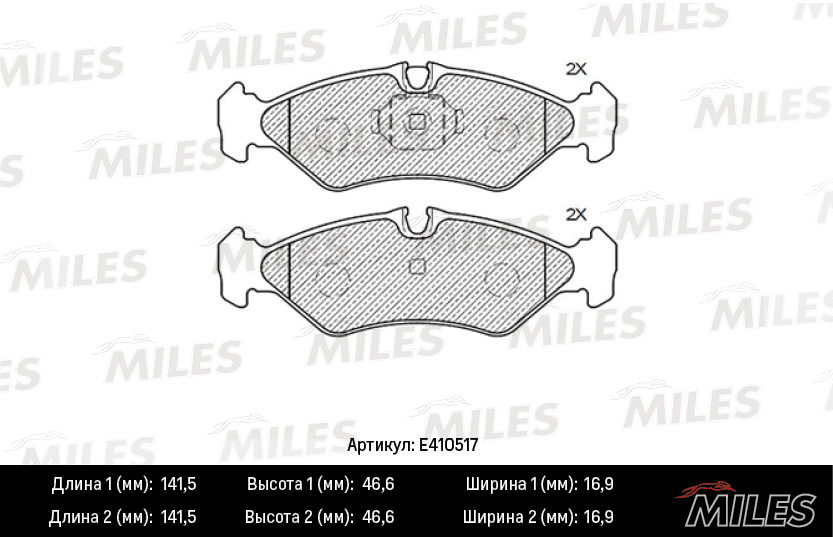 E410517 MILES Колодки тормозные задние (Смесь Low-Metallic) MERCEDES SPRINTER (2-4t) 9506/VOLK
