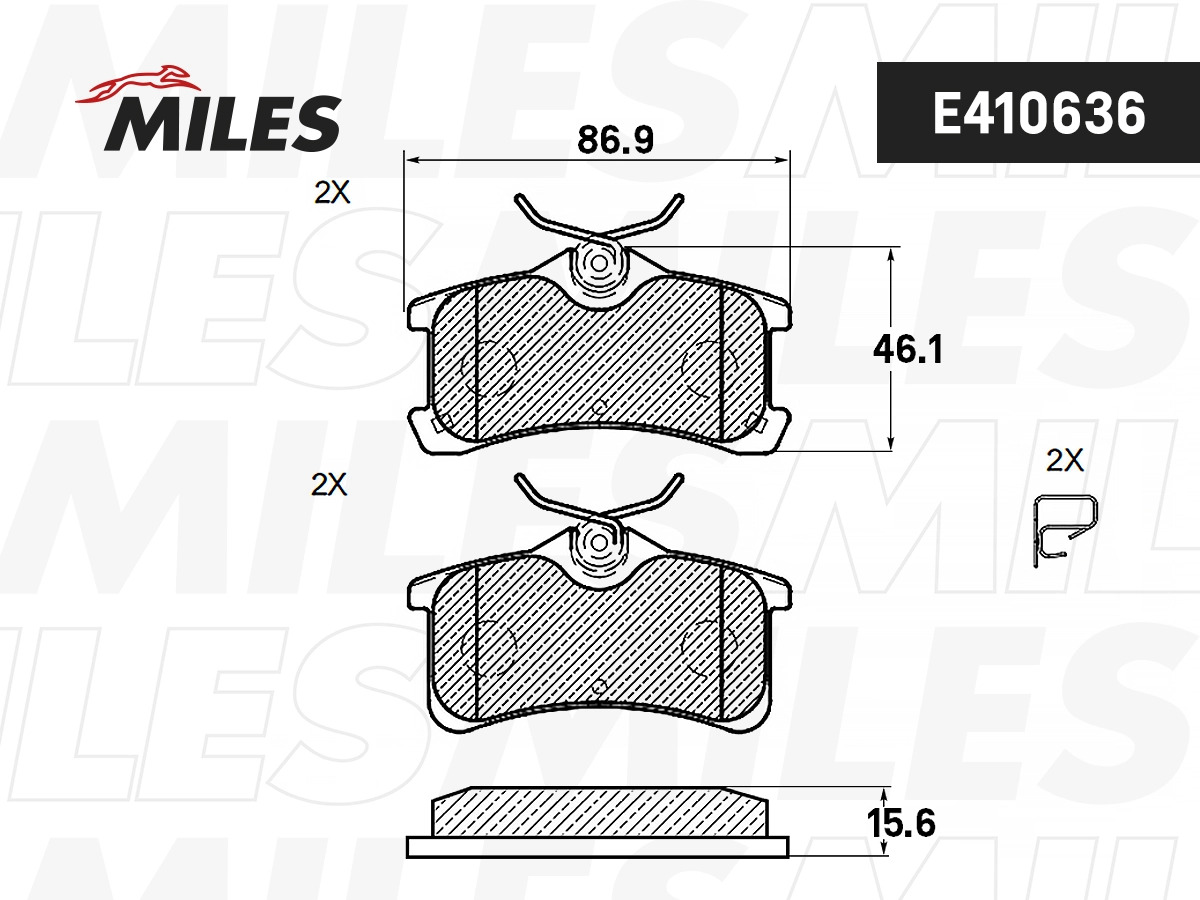 E410636 MILES Колодки тормозные задние (Смесь Low-Metallic) TOYOTA AVENSIS 1.6-2.0 97-03/COROL