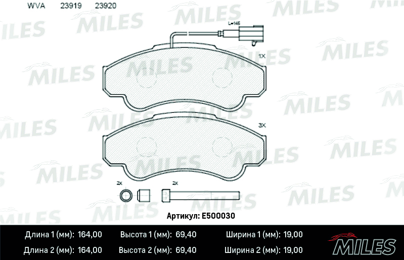 E500030 MILES Колодки тормозные передние (Смесь CERAMIC серия PRO) FIAT DUCATO 02/CITROEN JUMP