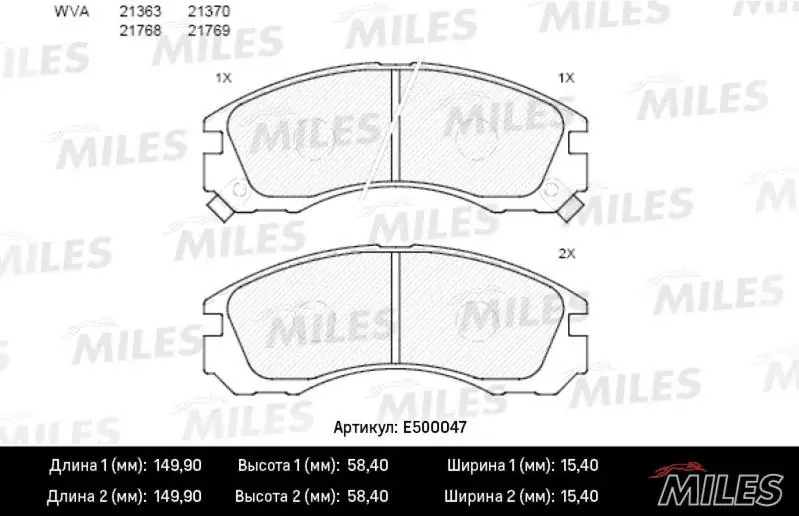 E500047 MILES Колодки тормозные передние (Смесь CERAMIC серия PRO) MITSUBISHI OUTLANDER 03/PAJ