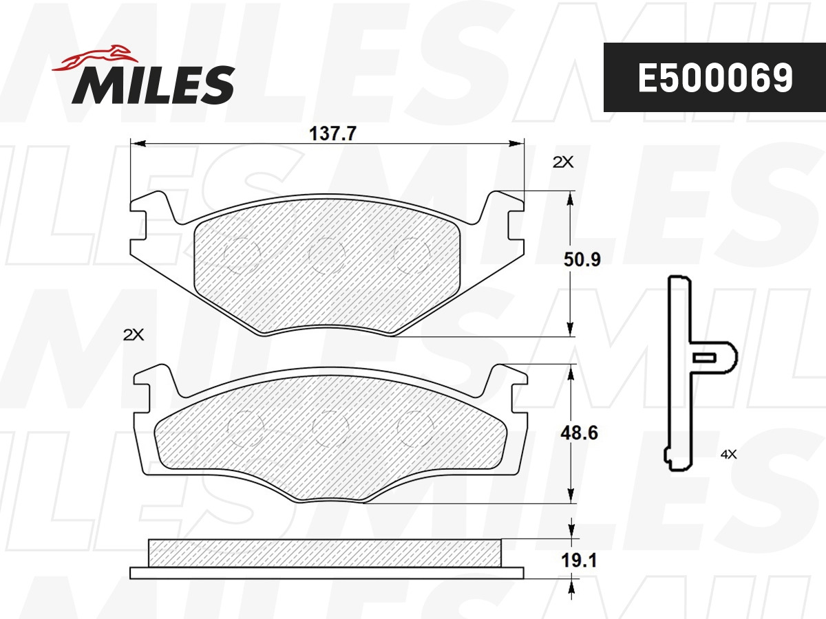 E500069 MILES Колодки тормозные передние (Смесь CERAMIC серия PRO) VOLKSWAGEN G2 1.6/G3 1.4/1.