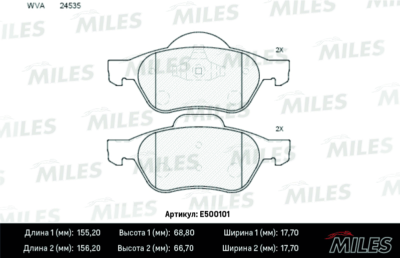 E500101 MILES Колодки тормозные передние (Смесь CERAMIC серия PRO) RENAULT MEGANE II/LAGUNA II