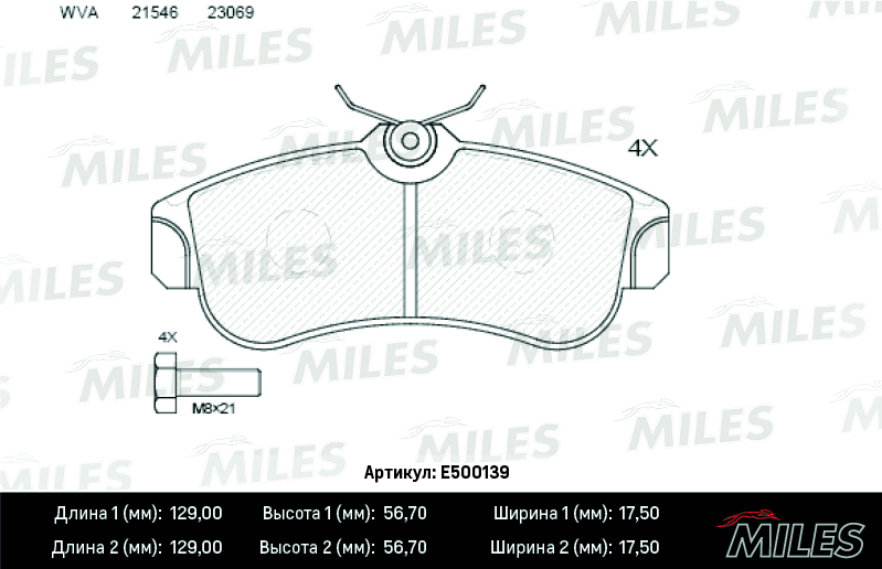 E500139 MILES Колодки тормозные передние (Смесь CERAMIC серия PRO) NISSAN ALMERA 00/PRIMERA 93