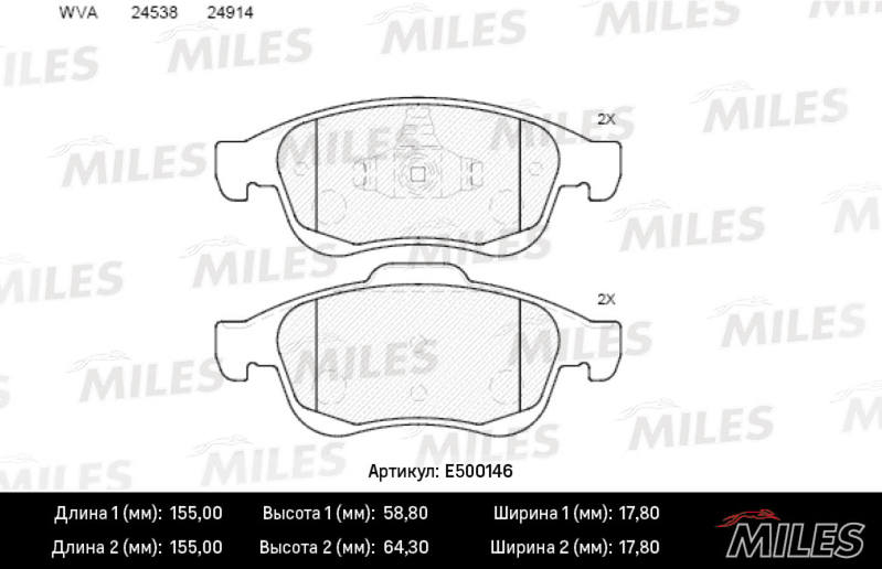 E500146 MILES Колодки тормозные передние (Смесь CERAMIC серия PRO) RENAULT DUSTER 10-/FLUENCE