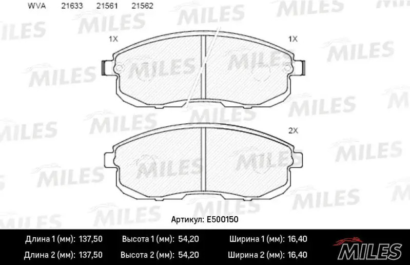 E500150 MILES Колодки тормозные передние с индикатором износа (Смесь CERAMIC серия PRO) NISSAN