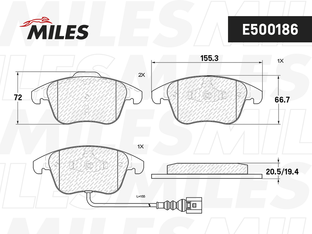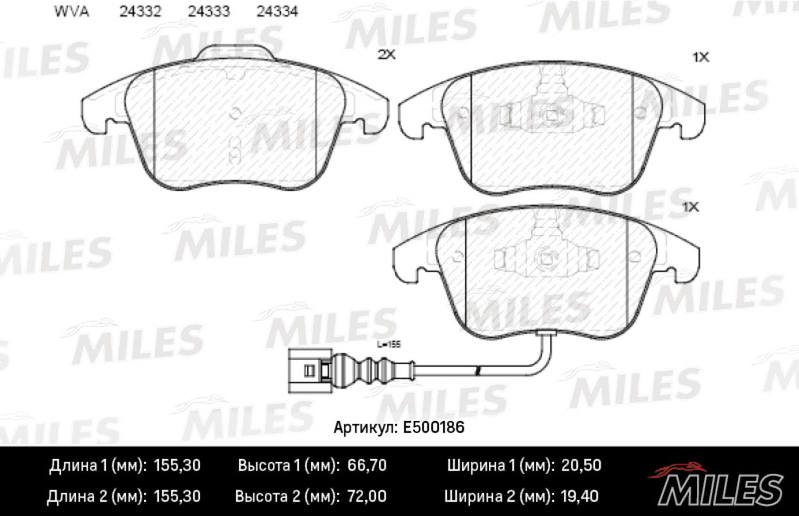 E500186 MILES Колодки тормозные передние (Смесь CERAMIC серия PRO) AUDI Q3 11-/VW SHARAN 10-/T