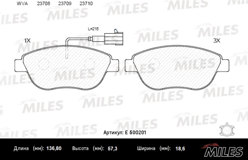 E500201 MILES Колодки тормозные передние (Смесь CERAMIC серия PRO) , OPEL CORSA D 06-/Fiat/CIT