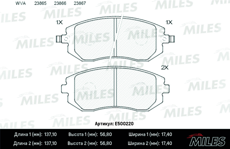 E500220 MILES Колодки тормозные передние (Смесь CERAMIC серия PRO) SUBARU FORESTER 01-/IMPREZA