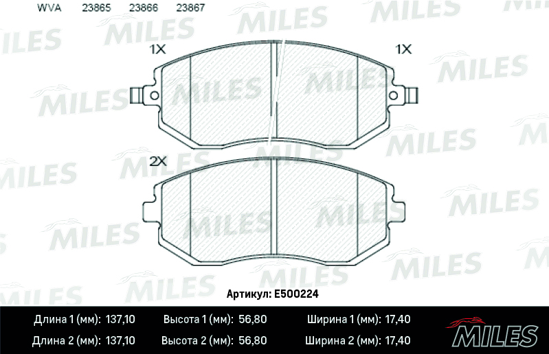 E500224 MILES Колодки тормозные передние (Смесь CERAMIC серия PRO) SUBARU FORESTER 01-/IMPREZA