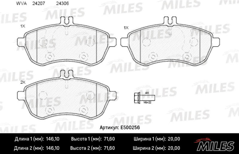 E500256 MILES Колодки тормозные передние (Смесь CERAMIC серия PRO) MERCEDES W204/W212 (TRW GDB