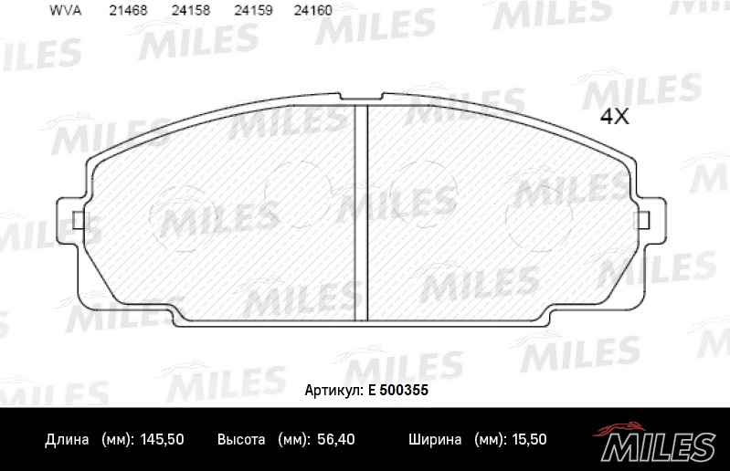 E500355 MILES Колодки тормозные передние (Смесь CERAMIC серия PRO) TOYOTA HIACE 2.0-2.7 84- (T