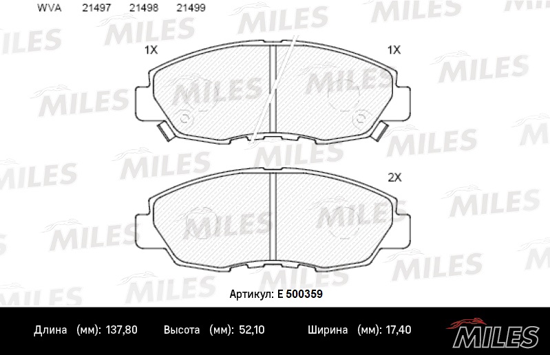E500359 MILES Колодки тормозные передние (Смесь CERAMIC серия PRO) HONDA ACCORD 2.0-2.2 90-93