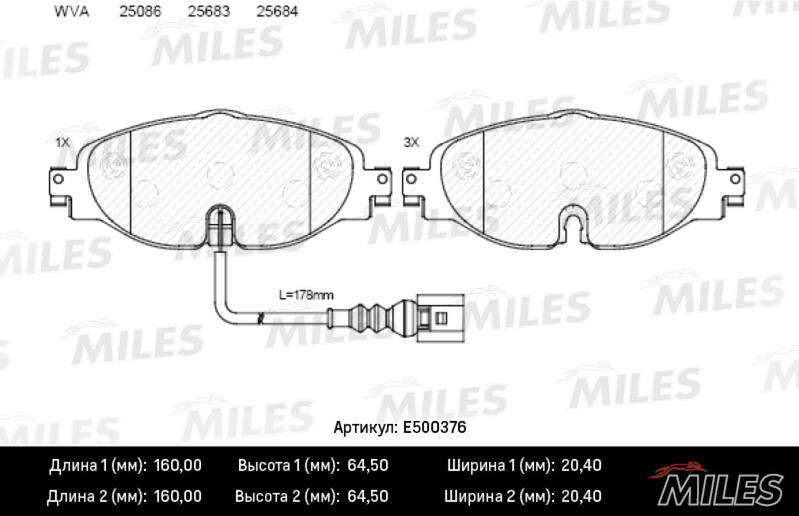 E500376 MILES Колодки тормозные передние (Смесь CERAMIC серия PRO) AUDI A3/SKODA OCTAVIA/VW GO