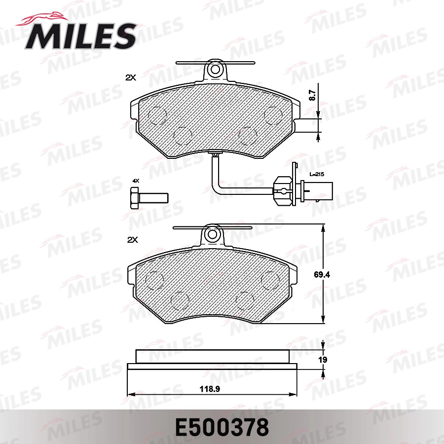 E500378 MILES Колодки тормозные передние (с датчиком) (Смесь CERAMIC серия PRO) AUDI A4 9901/P