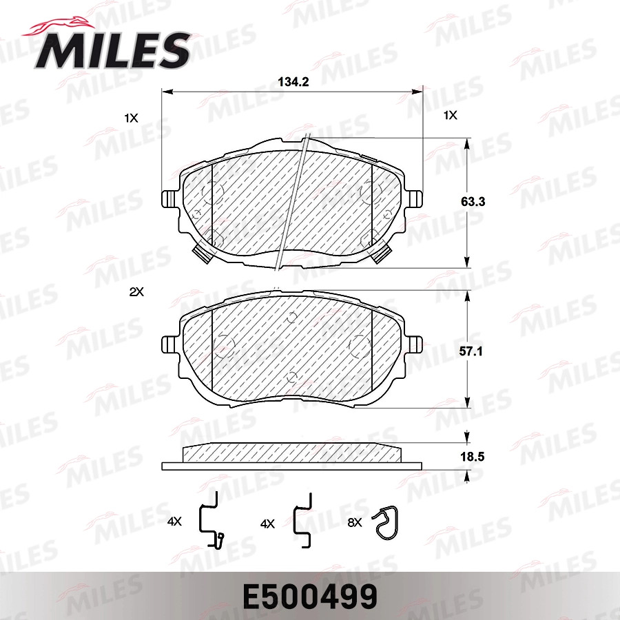 E500499 MILES Колодки тормозные передние (Смесь CERAMIC серия PRO) TOYOTA AURIS 12-/COROLLA 13