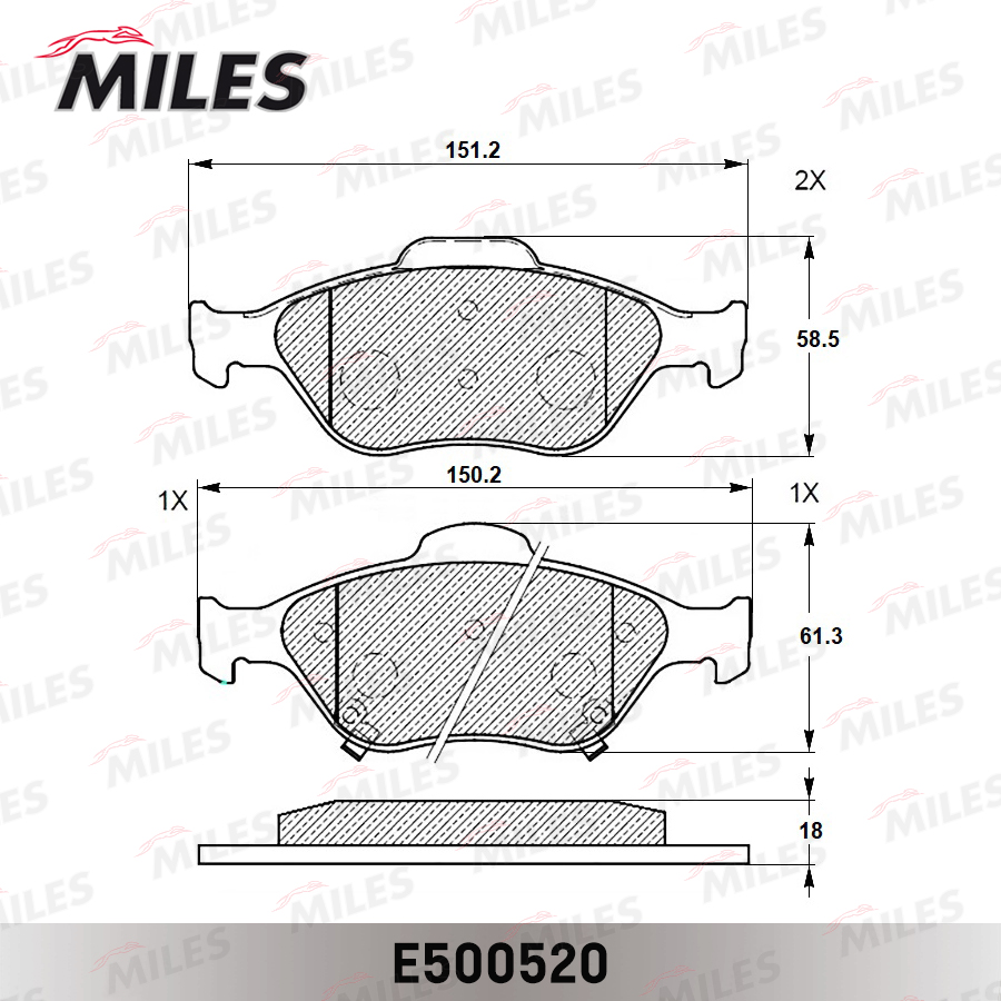E500520 MILES Колодки тормозные передние (Смесь CERAMIC серия PRO) TOYOTA YARIS 1.0-1.4 06- (T