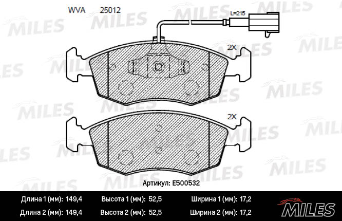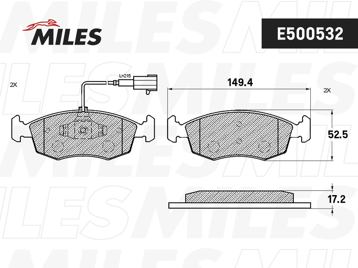 E500532 MILES Колодки тормозные передние (Смесь CERAMIC серия PRO) FIAT 500 09-/PUNTO 09-12 (T