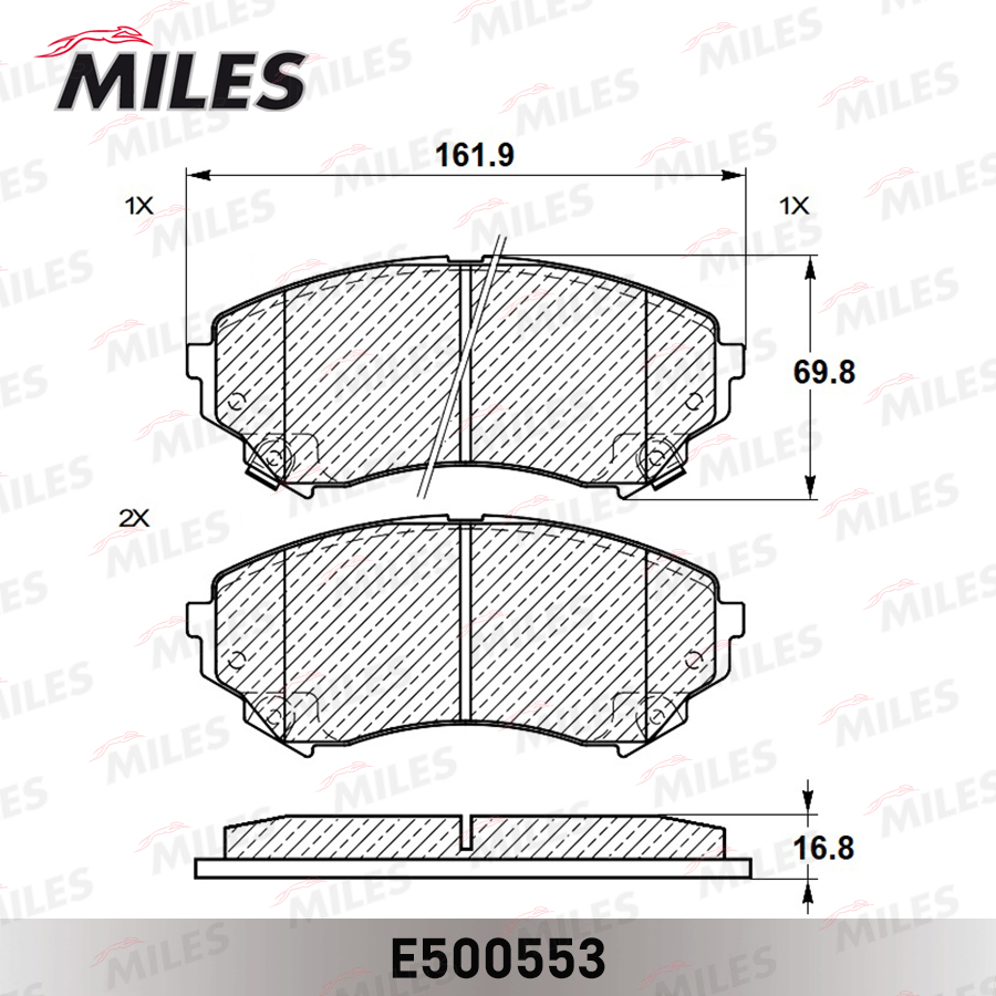 E500553 MILES Колодки тормозные передние (Смесь CERAMIC серия PRO) CADILLAC CTS 08- L162 мм. (