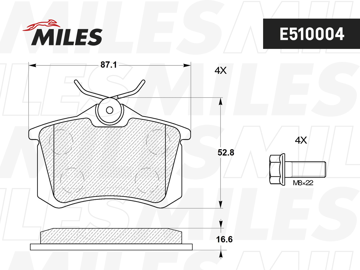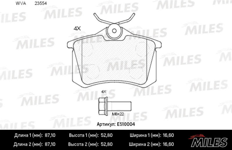 E510004 MILES Колодки тормозные задние (Смесь CERAMIC серия PRO) AUDI 96-/CITROEN 99-/RENAULT