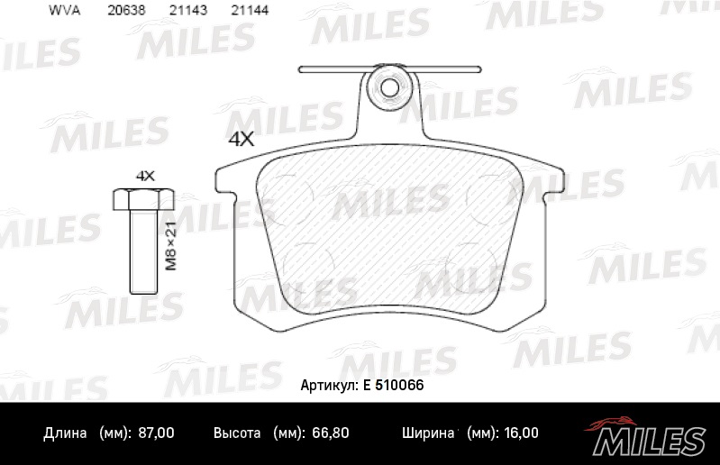E510066 MILES Колодки тормозные задние (Смесь CERAMIC серия PRO) AUDI А100 8295/A4 9597/A6 959