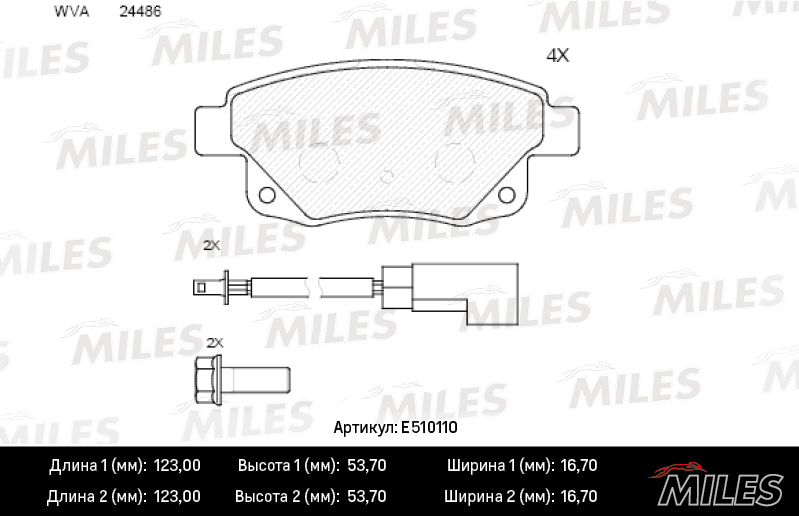 E510110 MILES Колодки тормозные задние (с датчиком) (Смесь CERAMIC серия PRO) FORD TRANSIT 06-