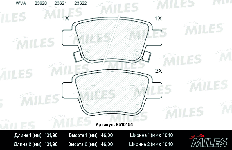 E510154 MILES Колодки тормозные задние (Смесь CERAMIC серия PRO) TOYOTA AVENSIS 03/COROLLA VER