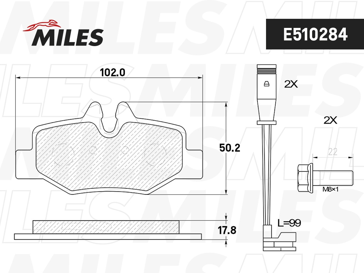 E510284 MILES Колодки тормозные задние (с датчиком) (Смесь CERAMIC серия PRO) MERCEDES VIANO/V