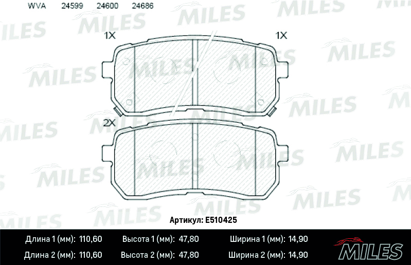 E510425 MILES Колодки тормозные задние (Смесь CERAMIC серия PRO) HYUNDAI H1 02-/iX55 3.0 08-/K