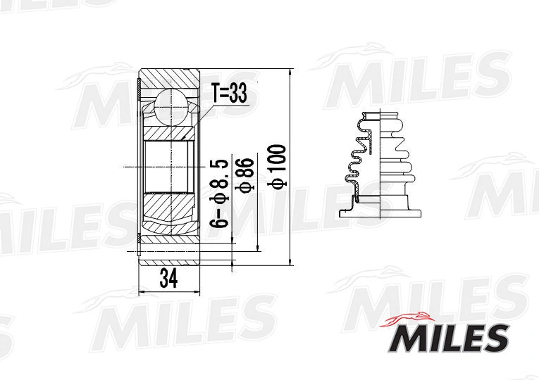 GA10009 MILES ШРУС внутренний AUDI A3/VW G2/G3/POLO/PASSAT/SKODA OCTAVIA/SEAT TOLEDO 1.6-2.8 8