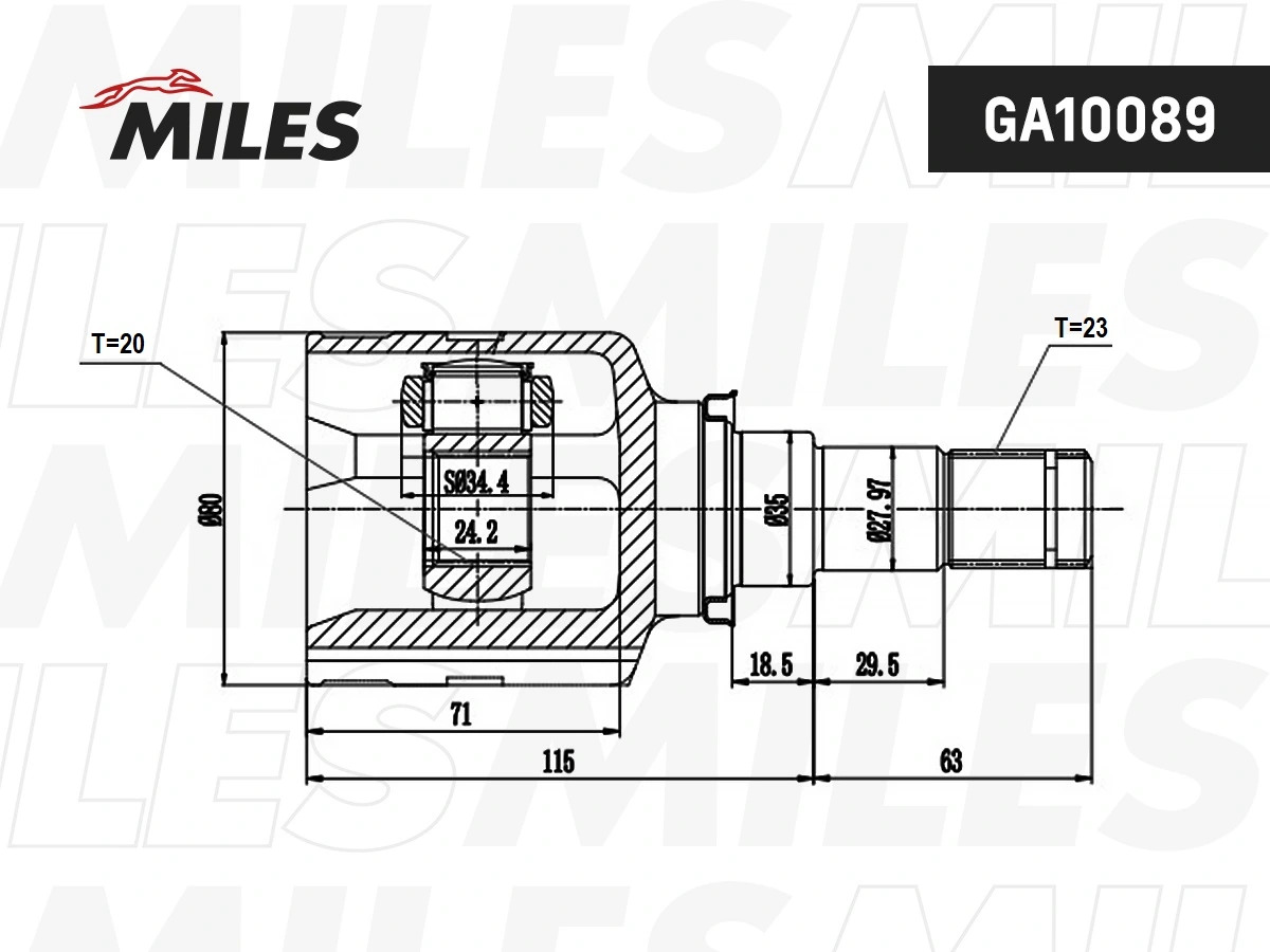 GA10089 MILES ШРУС внутренний TOYOTA AURIS/HYBRID (UKP) ADE186,NDE180,NRE18#,WWE185,ZRE185,ZWE