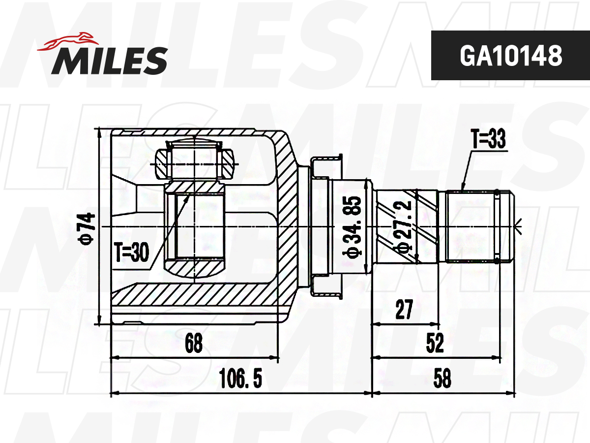 GA10148 MILES ШРУС внутренний MITSUBISHI LANCER VIII 1.5 08- GA10148