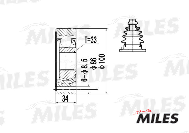 GA11005 MILES ШРУС внутренний левый AUDI 80/A3/A4/VW G1/G2/G3/PASSAT/POLO седан RUS 11-/SKODA