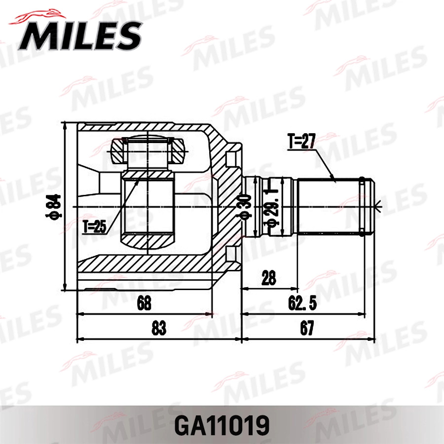 GA11019 MILES ШРУС внутренний левый HYUNDAI SONATA YF 2010-2014 GA11019