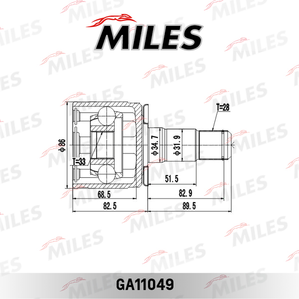 GA11049 MILES ШРУС внутренний левый MITSUBISHI PAJERO II/SPORT I/L200 III-IV 2.4D-3.0 91- GA11