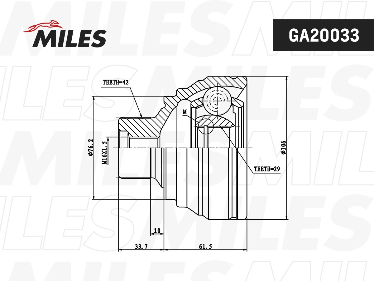 GA20033 MILES ШРУС наружный AUDI A4/A5 2.7TD 07- (GKN 304962) GA20033