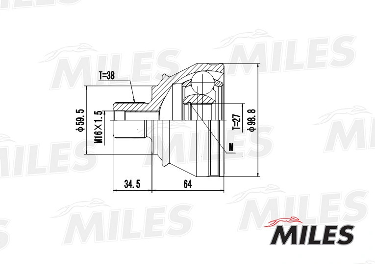 GA20040 MILES ШРУС наружный AUDI A6/A8 2.0TD-3.2 04- (с ABS) (GKN 304952) GA20040