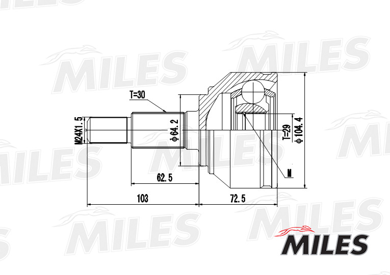 GA20041 MILES ШРУС наружный AUDI Q7/VW TOUAREG 4.2TD-6.0 02- (GKN 304735) GA20041