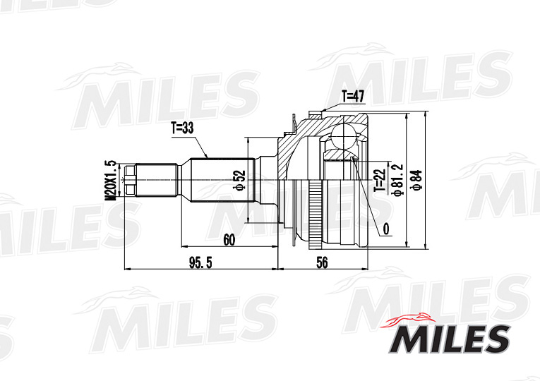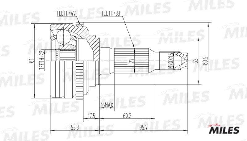 GA20047 MILES ШРУС наружный CHEVROLET LACETTI 1.4/1.6/1.8 05- (GKN 305237) GA20047