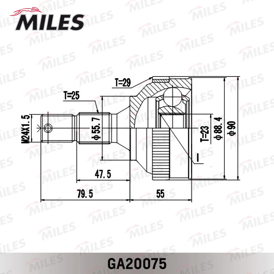 GA20075 MILES ШРУС наружный левый/правый CITROEN ZX/XSARA/PEUGEOT 306/405 1.6-2.0 93-01 +ABS.