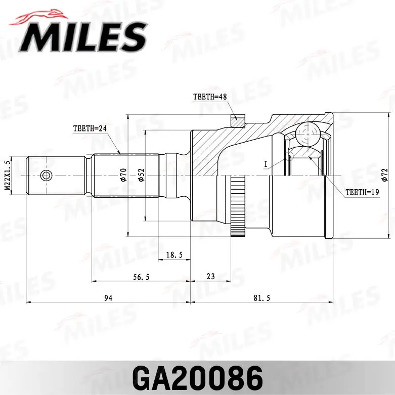 GA20086 MILES ШРУС наружный DAIHATSU TERIOS 1.3 97-00 (с ABS) (SKF VKJA5976) GA20086
