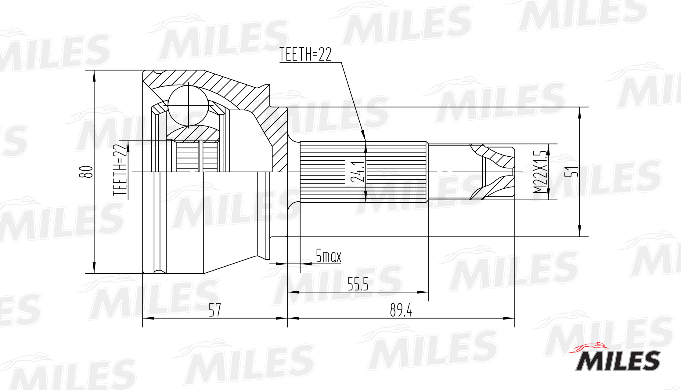 GA20091 MILES ШРУС наружный FIAT DOBLO 1.2-1.9D 01- (GKN 303914) GA20091