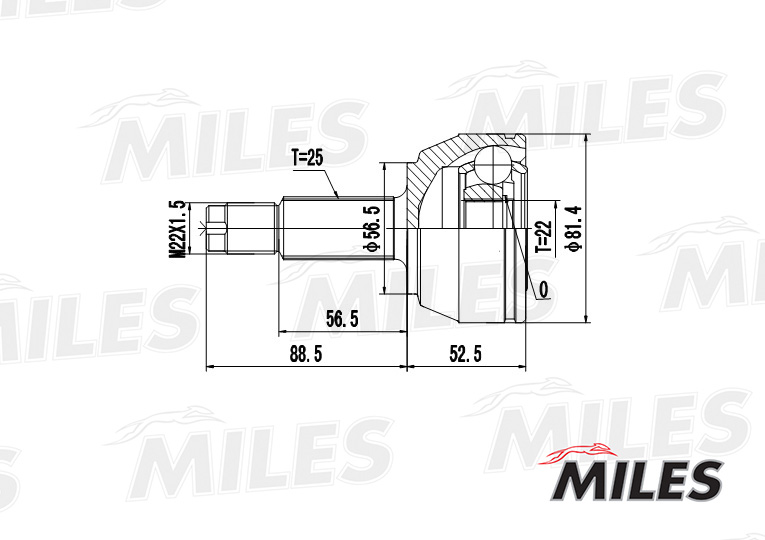 GA20101 MILES СНЯТ С ПР-ВА ШРУС наружный FORD ESCORT/FIESTA/ORION 1.4-1.8 90-99 (GKN 302871) G